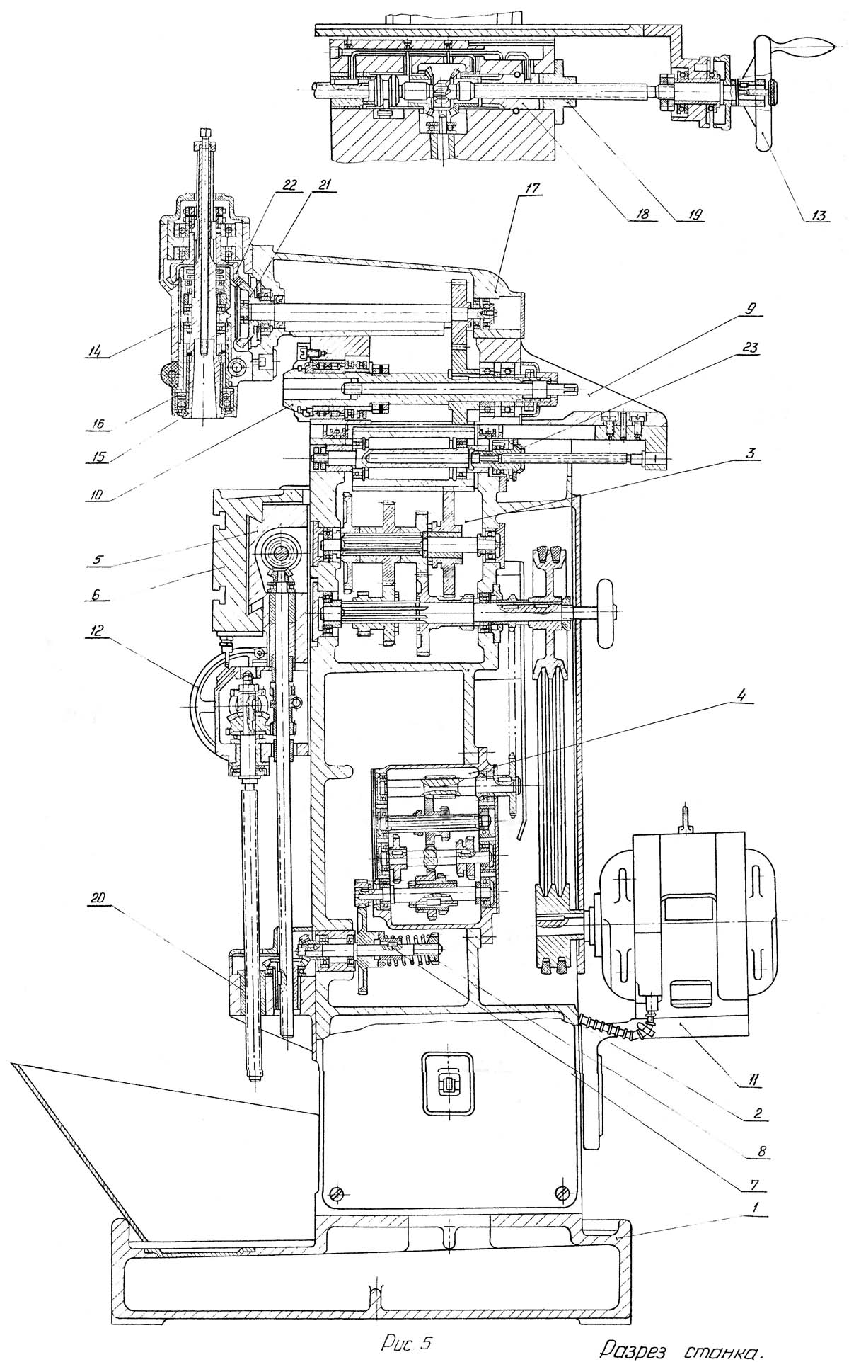 Разрез універсального фрезерного верстата ОФ-55. Увеличенный чертеж