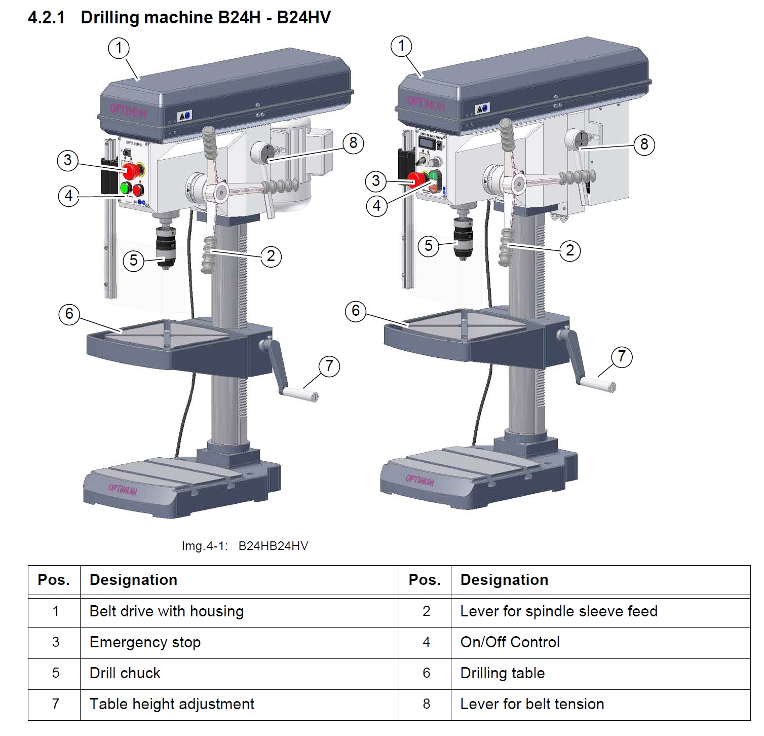 OPTIdrill B 24HV (Vario) Верстат свердлильний настільний схеми, опис, характеристики