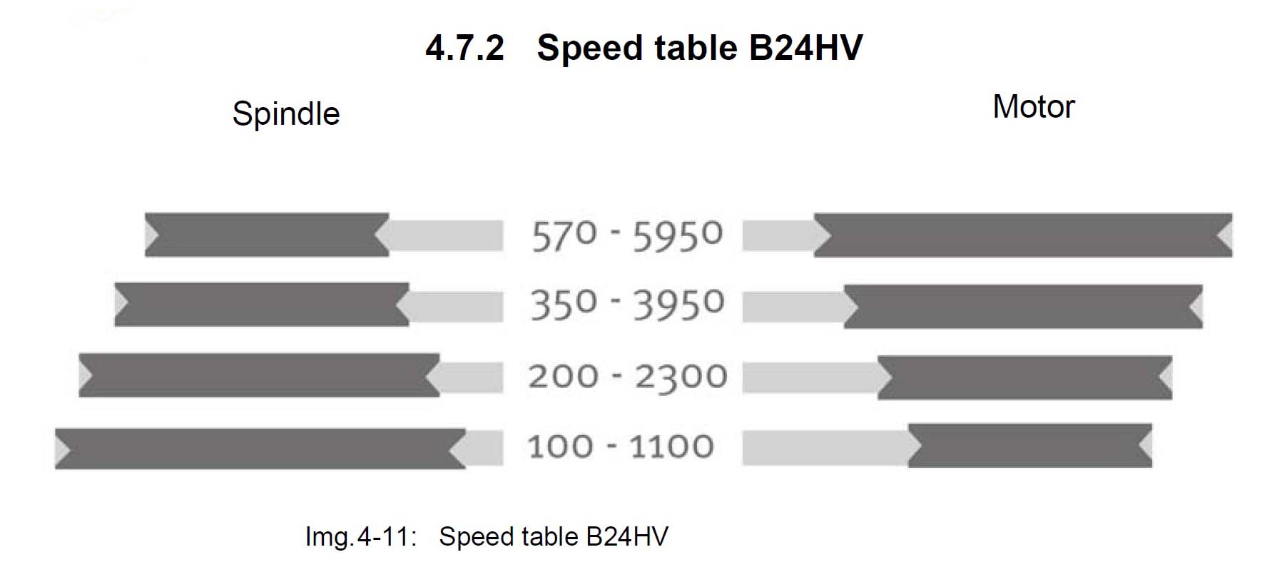 Починаючи з моделі B 24H (400 В) - Пряме та зворотне обертання шпинделя.