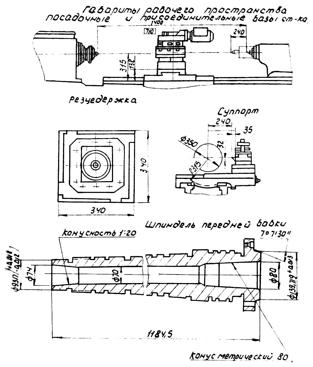 | Размер центра в шпинделе по ГОСТ 18259-72 | Конус метрический 80 | Конус метрический 80 |