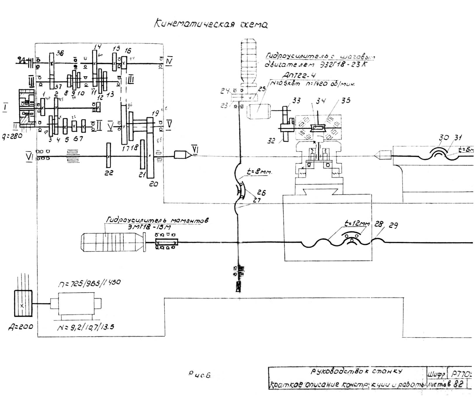 Кінематична схема токарного верстата з ЧПУ РТ705Ф312. Дивитись у збільшеному масштабі
