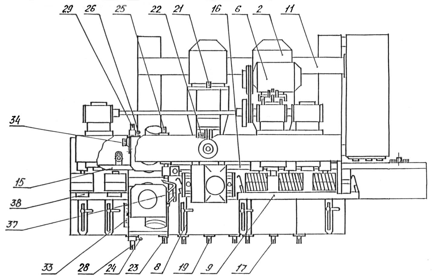 Розташування основних вузлів четырехстороннего строгального верстата С16-42