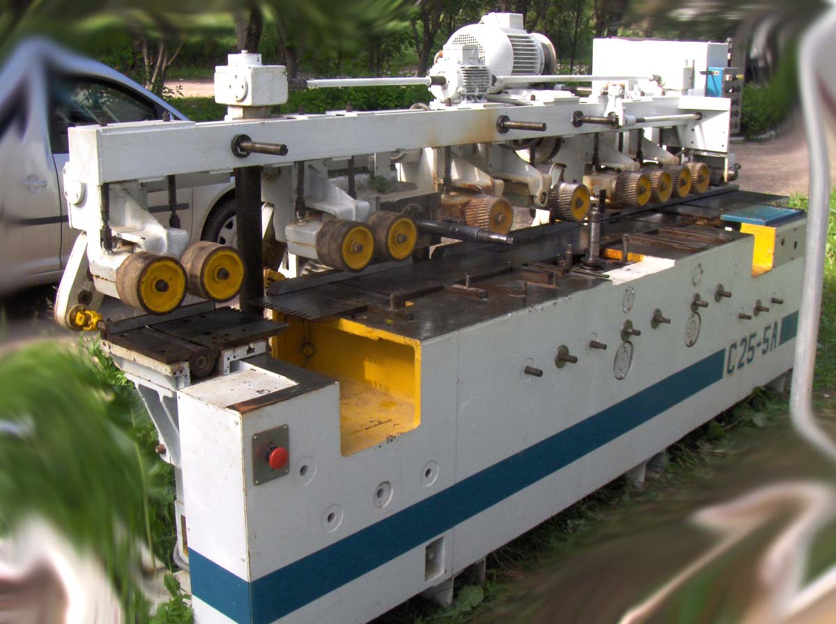 Верстат С25-5А относится к верстатам тяжелой серии, имеет п'ять супортів: нижний, правый, левый, верхний і калевочный. Профильные роботи могут выполняться боковыми, верхней і калевочными фрезами. Для деления обрабатываемого материала по ширине на шпиндель калевочного суппорта могут быть установлены пилы. Калевочный супорт имеет возможность роботи как в нижнем, так і верхнем положении.