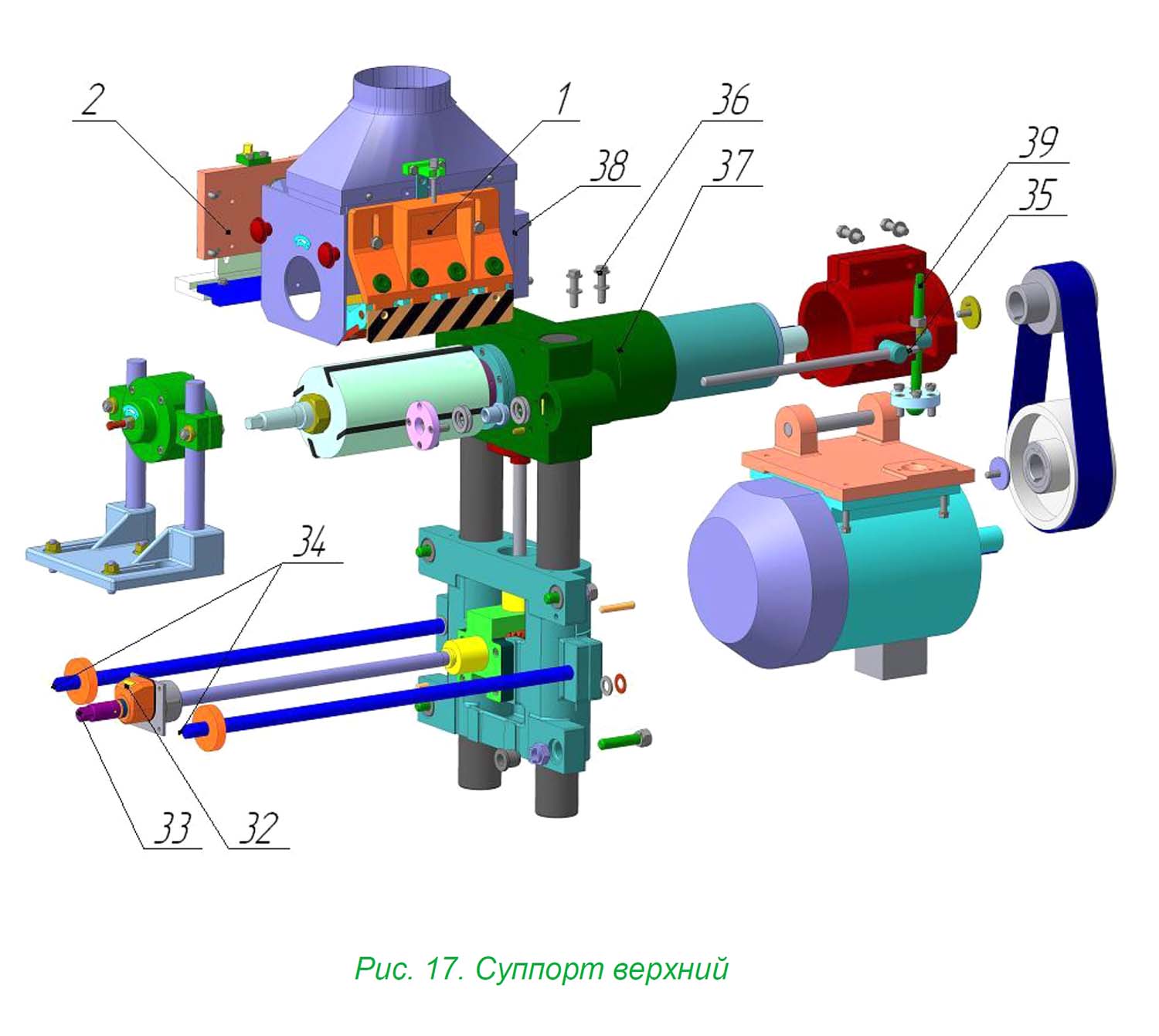 Подъем і опускание заднего столика осуществляется винтом 45, а фиксация в нужном положении - квадратом 46.
