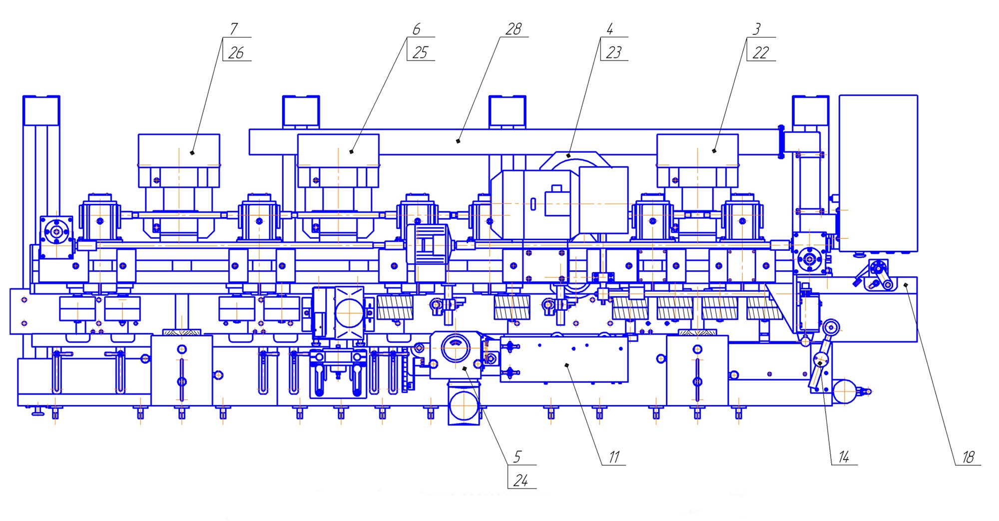 14. Верхний горизонтальный ножевой вал