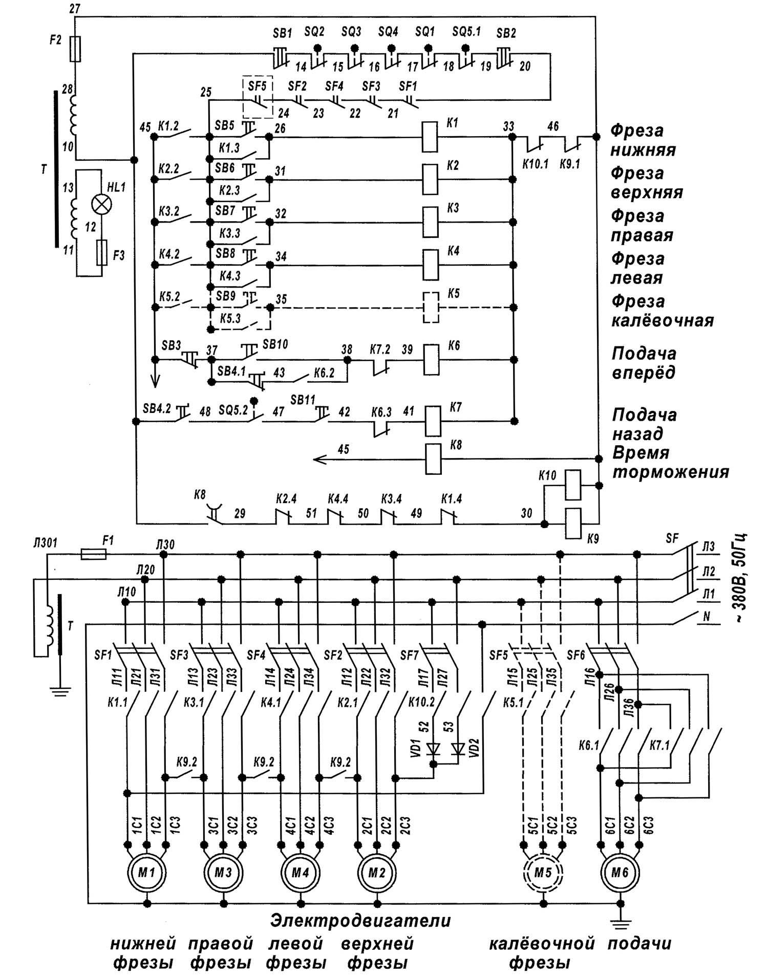 Кінематична схема четырехстороннего строгального верстата С26-2Н. Дивитись у збільшеному масштабі