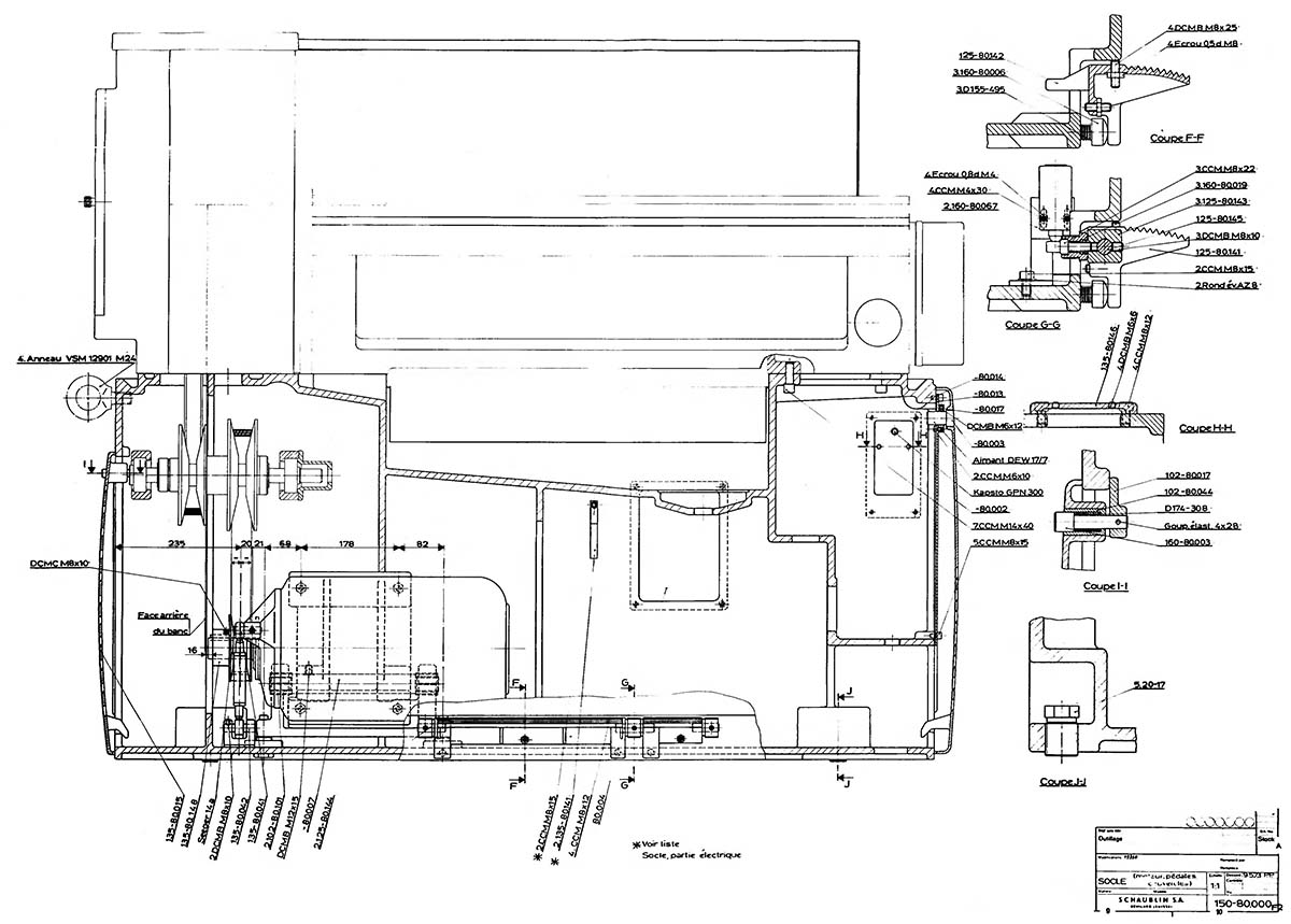 Приблизно до 1982 року напрямні були виготовлені із загартованої інструментальної сталі та закріплені на розвантаженій литій станині за допомогою незліченних гвинтів M10. Ця станина шліфується по периметру з найменшою глибиною шорсткості. При шліфуванні цієї невеликої машини це означає високий рівень складності при великих витратах часу.