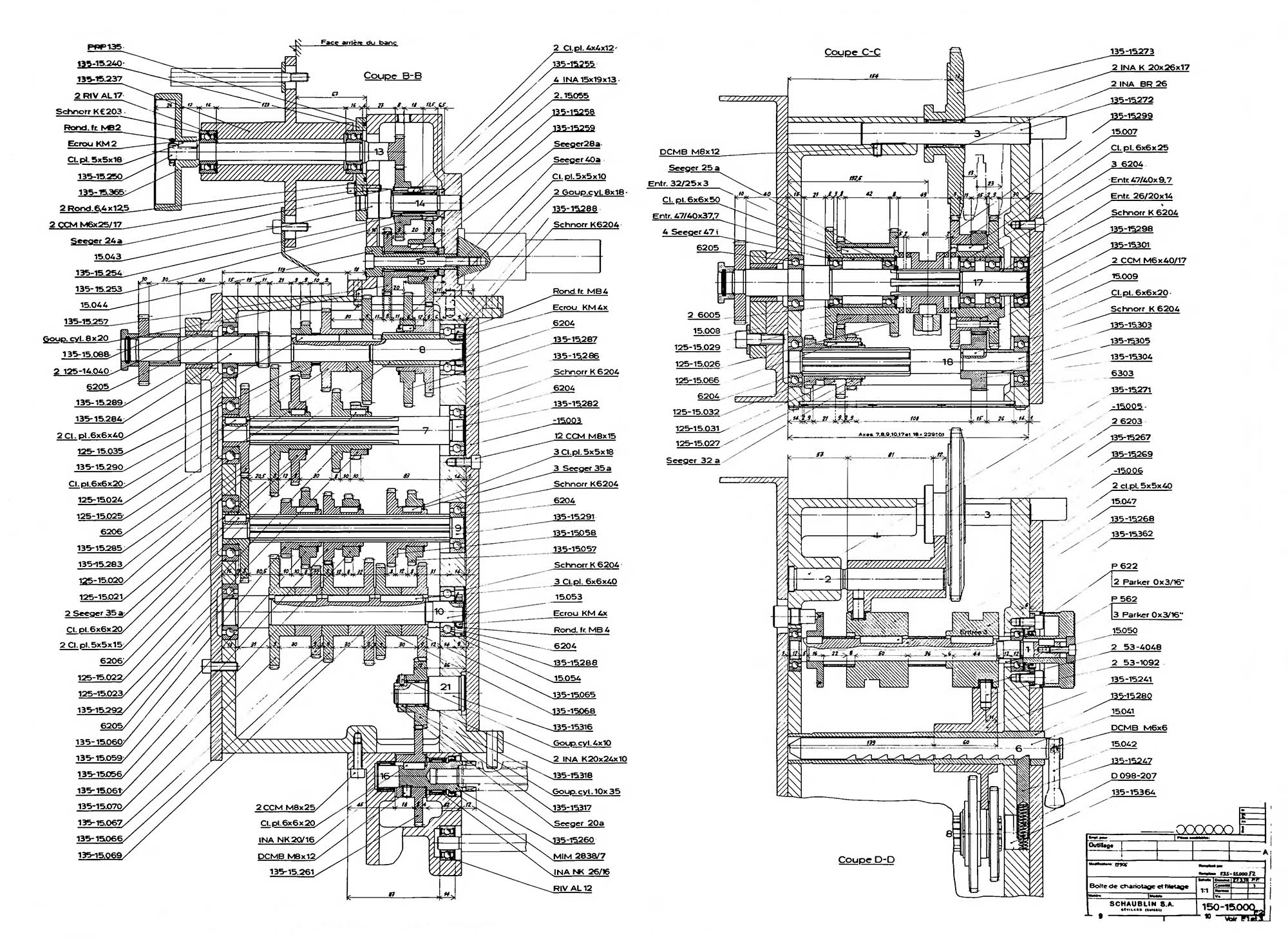 Коробка подач на Schaublin 150 розташована на правій стороні станії, має власний електродвигун і використовується тільки при точенні. Механізм різьбонарізування змонтований поруч із передньою бабкою верстата.