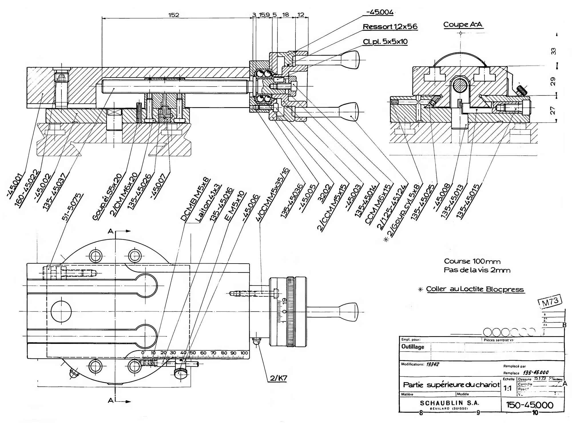 Для нарізування різьблення за допомогою Schaublin 135, 150, 160 замість ходового ггвинта, як на всіх інших верстатах, використовується ШВП (кулькова гвинтова пара), яка відключається, коли супорт виходить за межі робочого простору.