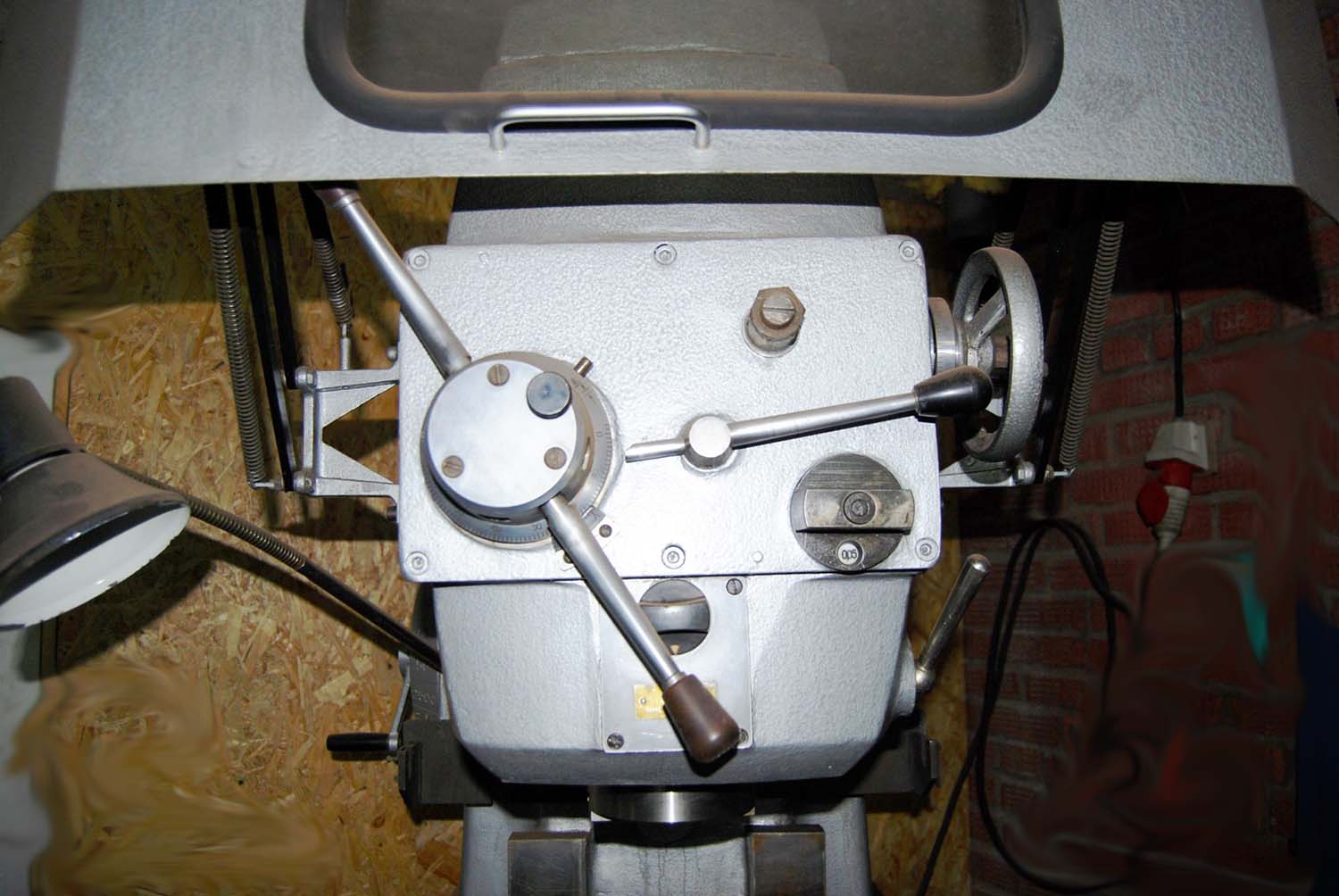 Поворот шпиндельной головки осуществляется вручную при помощи червяка з шестерней, вмонтированных во фланцевую часть верстата.