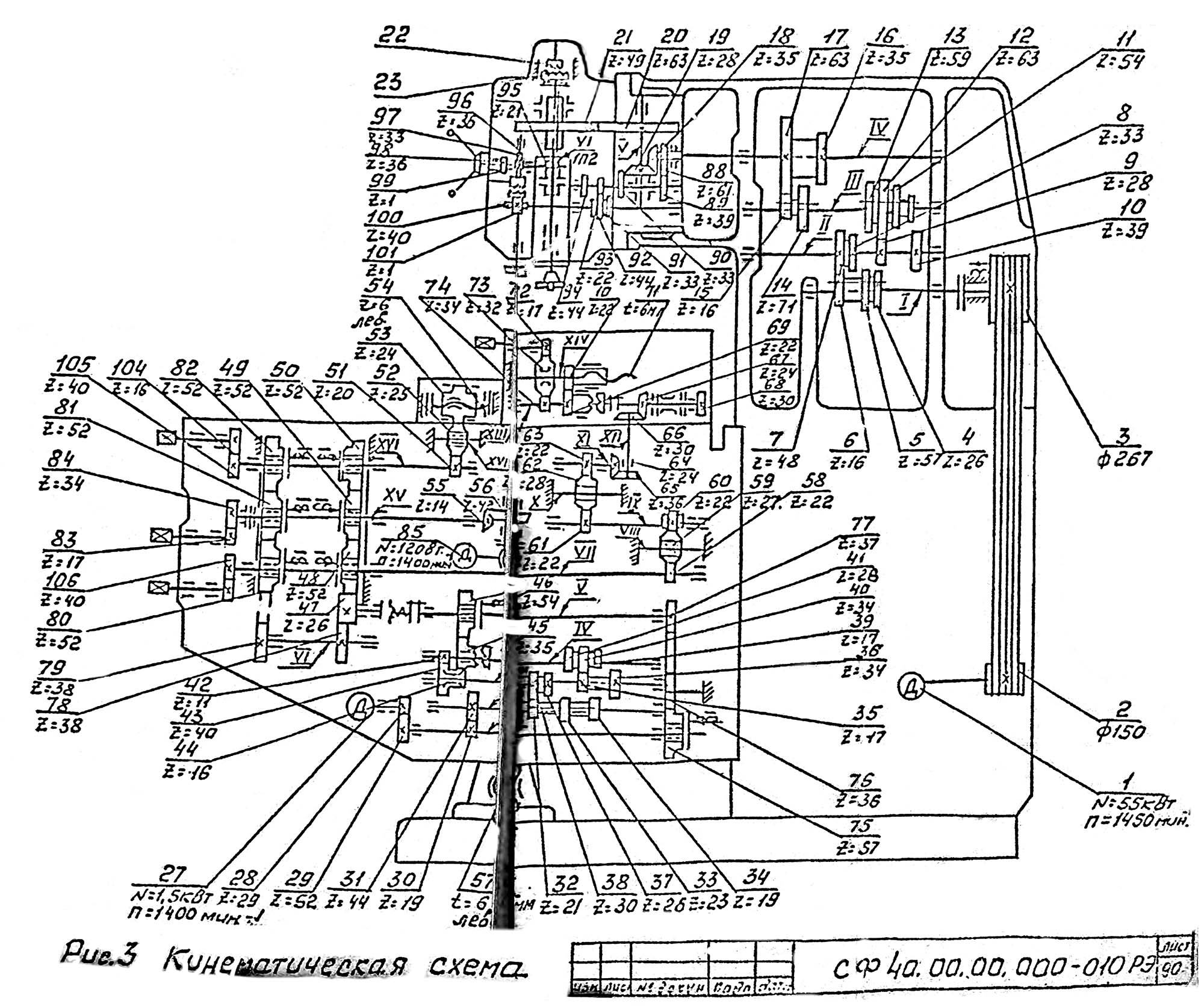 2. Кінематична схема консольно-фрезерного верстата СФ-40. Дивитись у збільшеному масштабі