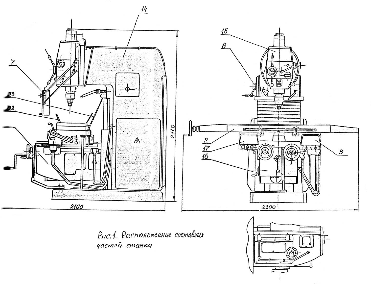 СФ-40 Розташування складових частин і органів керування консольно-фрезерного верстата