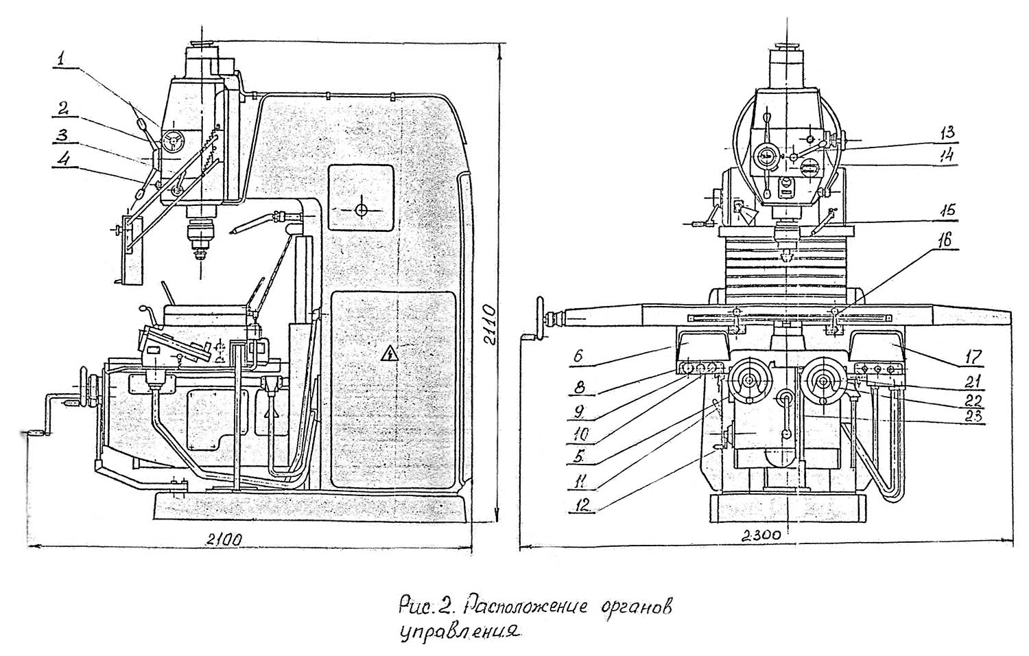 Розташування органів керування консольно-фрезерным верстатом СФ-40. Дивитись у збільшеному масштабі