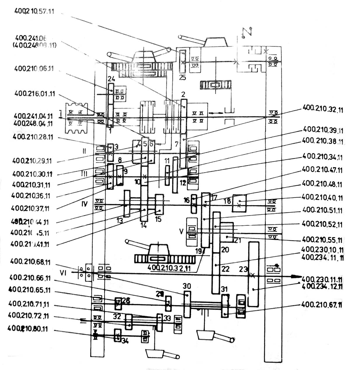 Схема кінематична токарно-гвинторізного верстата SN-402, SN-502. Дивитись у збільшеному масштабі