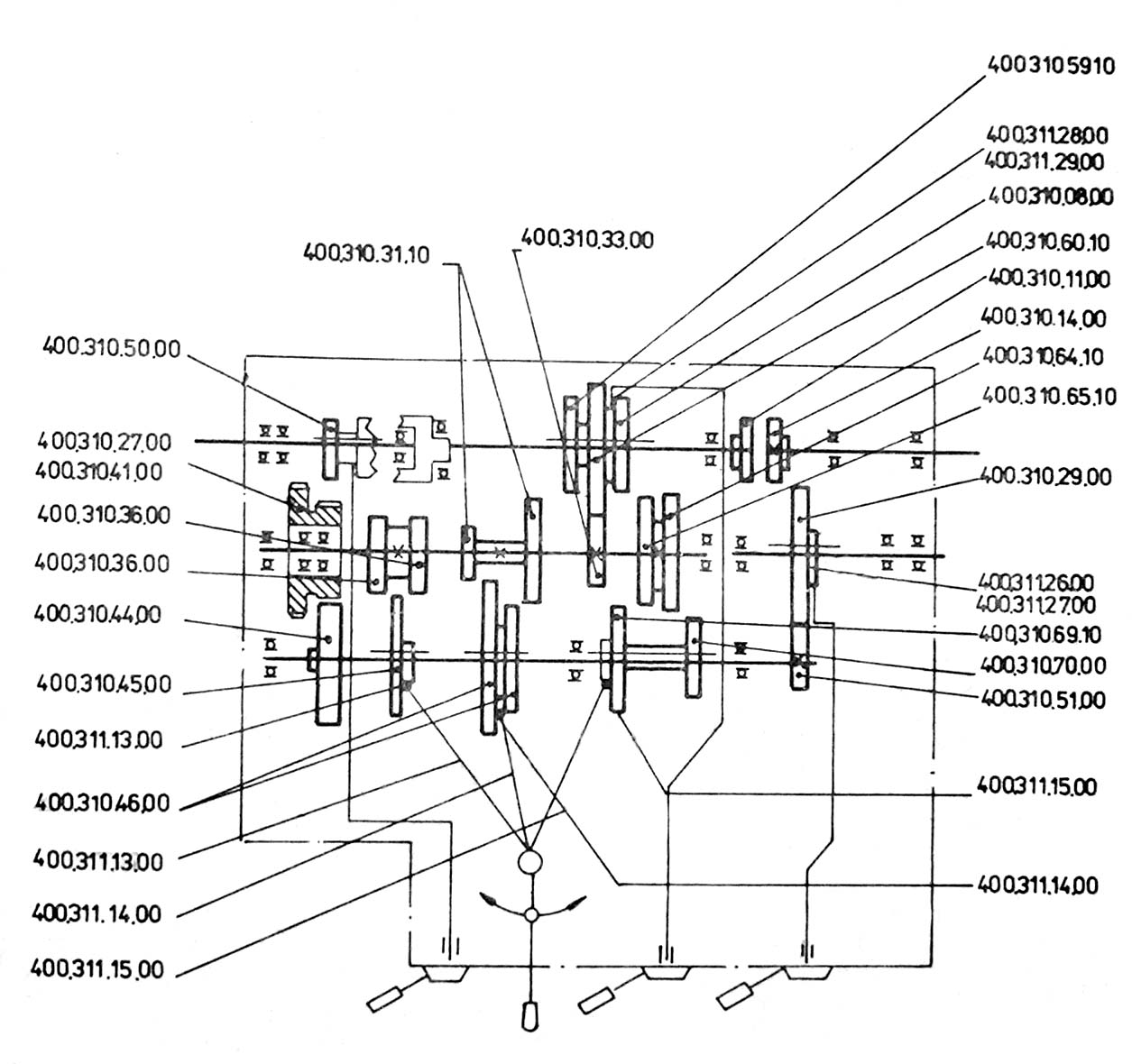 Кінематична схема шпиндельной бабки токарного верстата SN-402