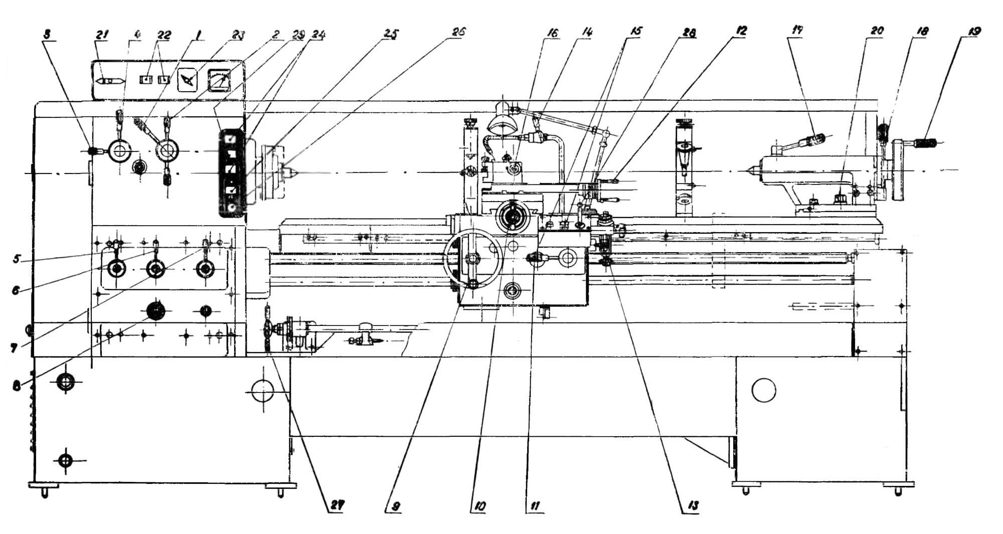 Рис.1. Розташування основних вузлів токарного верстата SNA 400