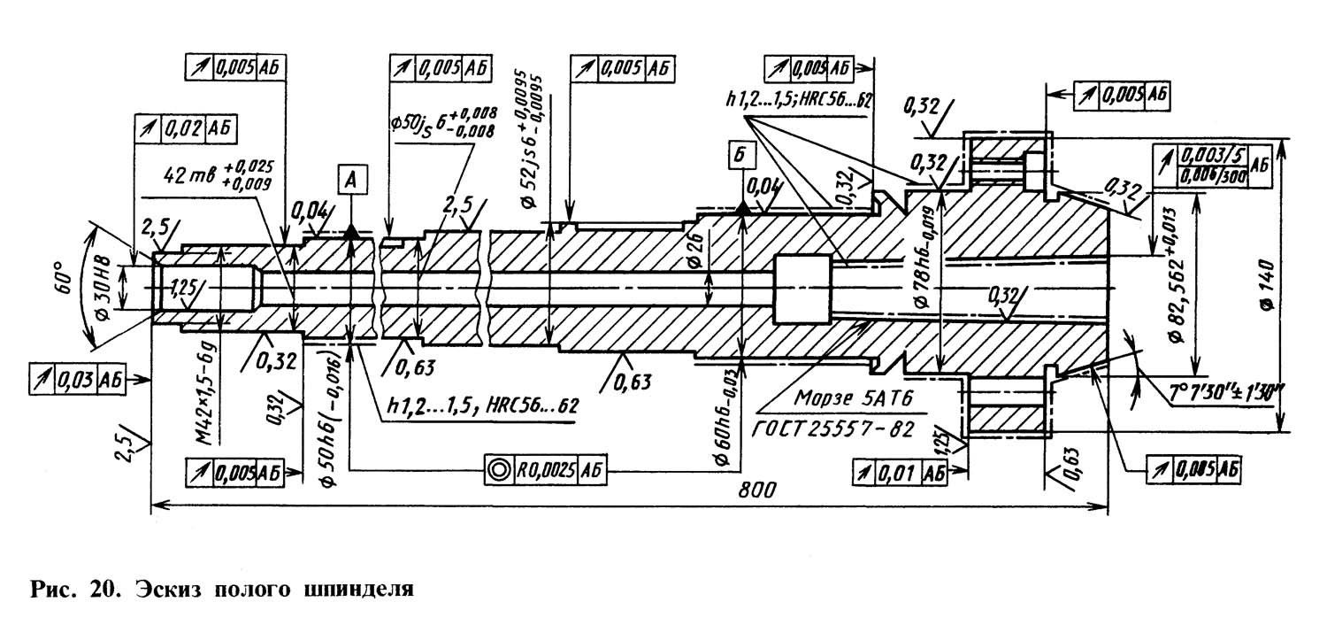 Ескіз порожнистого шпинделя токарно-гвинторізного верстата. Дивитись у збільшеному масштабі