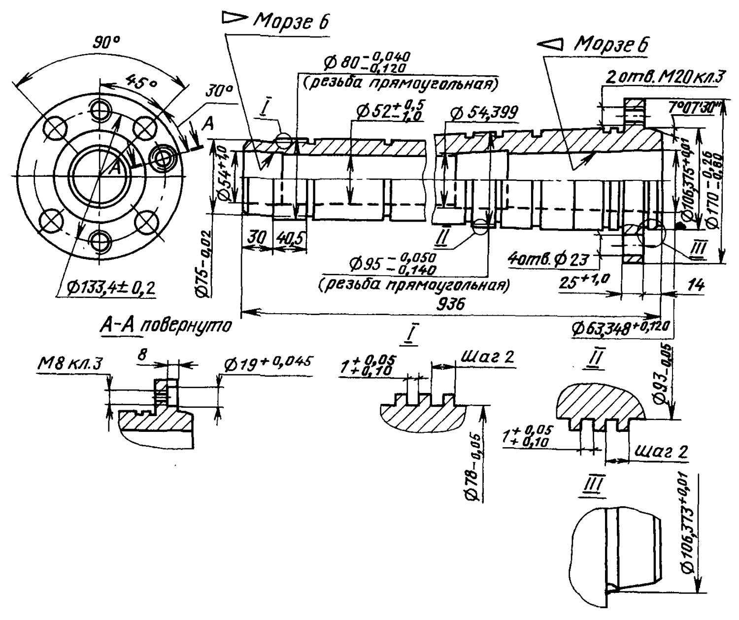 Креслення шпинделя токарного верстата 16К20. Дивитись у збільшеному масштабі