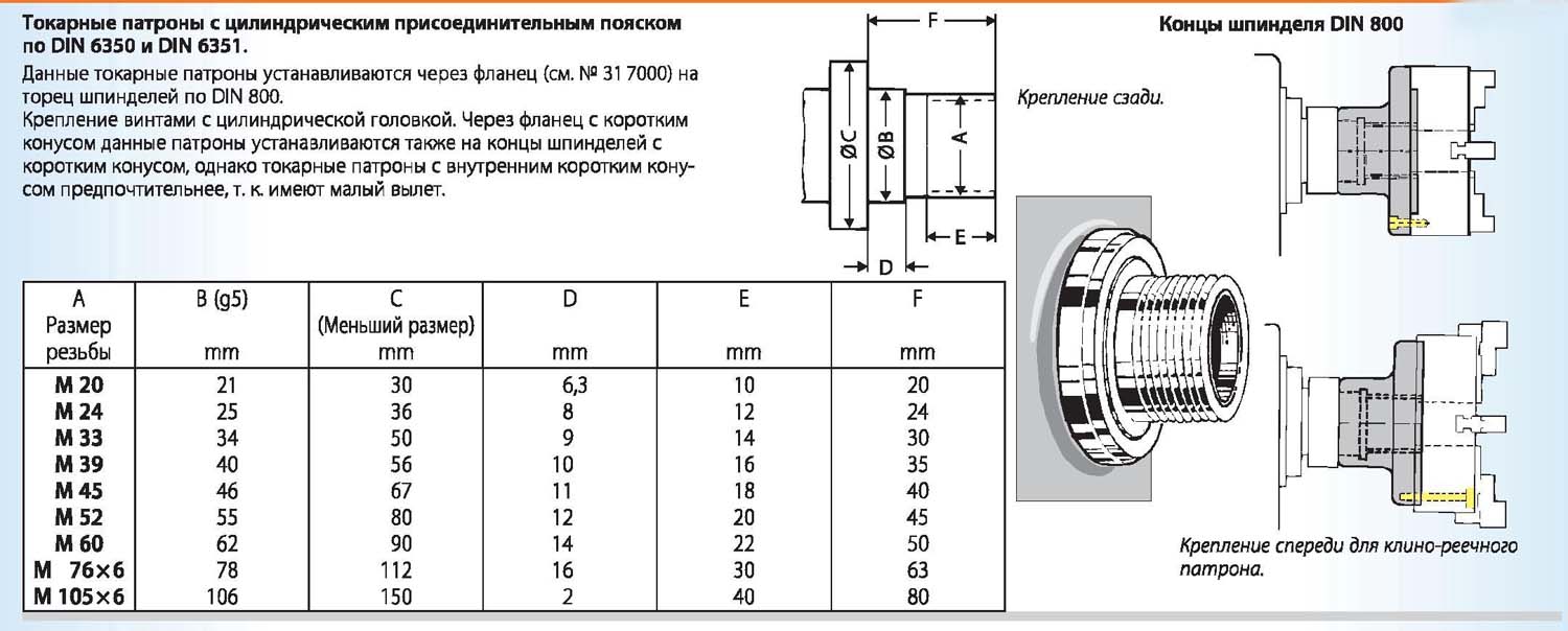 Фланец шпинделя снабжен коротким конусом 1:4 (7°7′30″), обеспечивающим надежное центрирование патрона. Допуски на конусы назначаются з таким расчетом, чтобы при установці патрона от руки между торцевыми поверхностями шпинделя і патрона оставался небольшой зазор, при затягивании крепежных винтов зазор ликвидируется, а конусы сопрягаются по посадке, близкой к прессовой. Вследствие большого угла конуса патрон після освобождения винтов легко снимается. Вылет патрона минимальный.