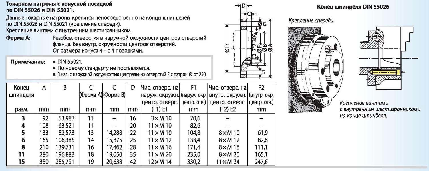 ГОСТ 12595-2003 (DIN 55026, ИСО 702-1:2001). (Взамен ГОСТ 2570-58). Верстати металорізальні. Концы шпинделей фланцевые типа А і фланцы зажимных устройств. Основні і присоединительные розміри.