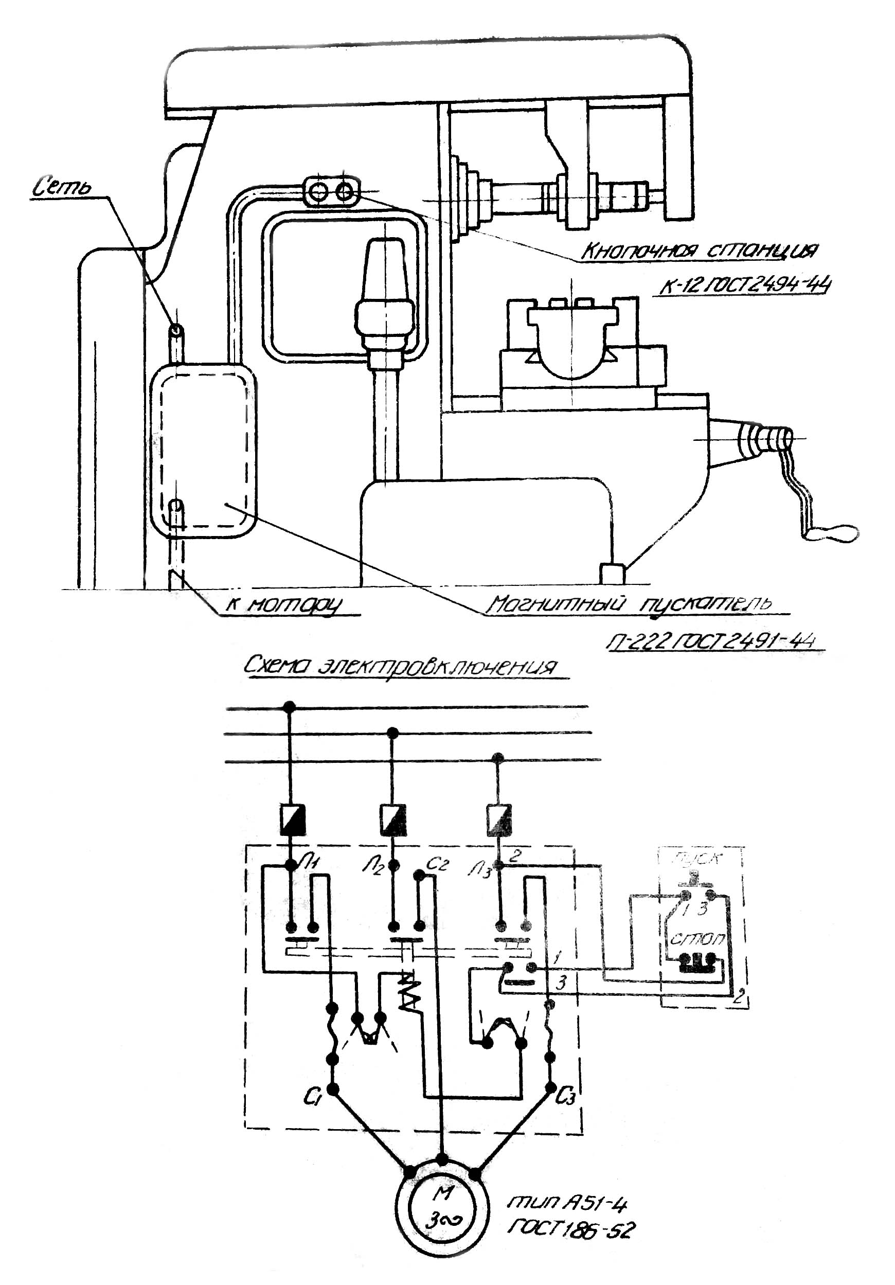 Електрична схема консольно-фрезерного верстата Дзержинец ТГ-2