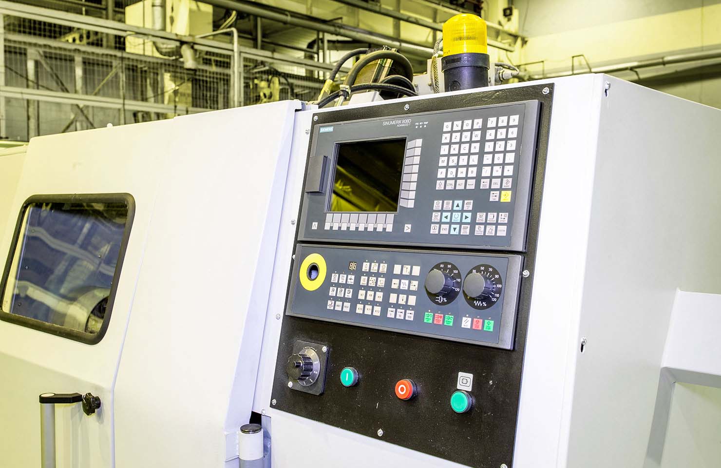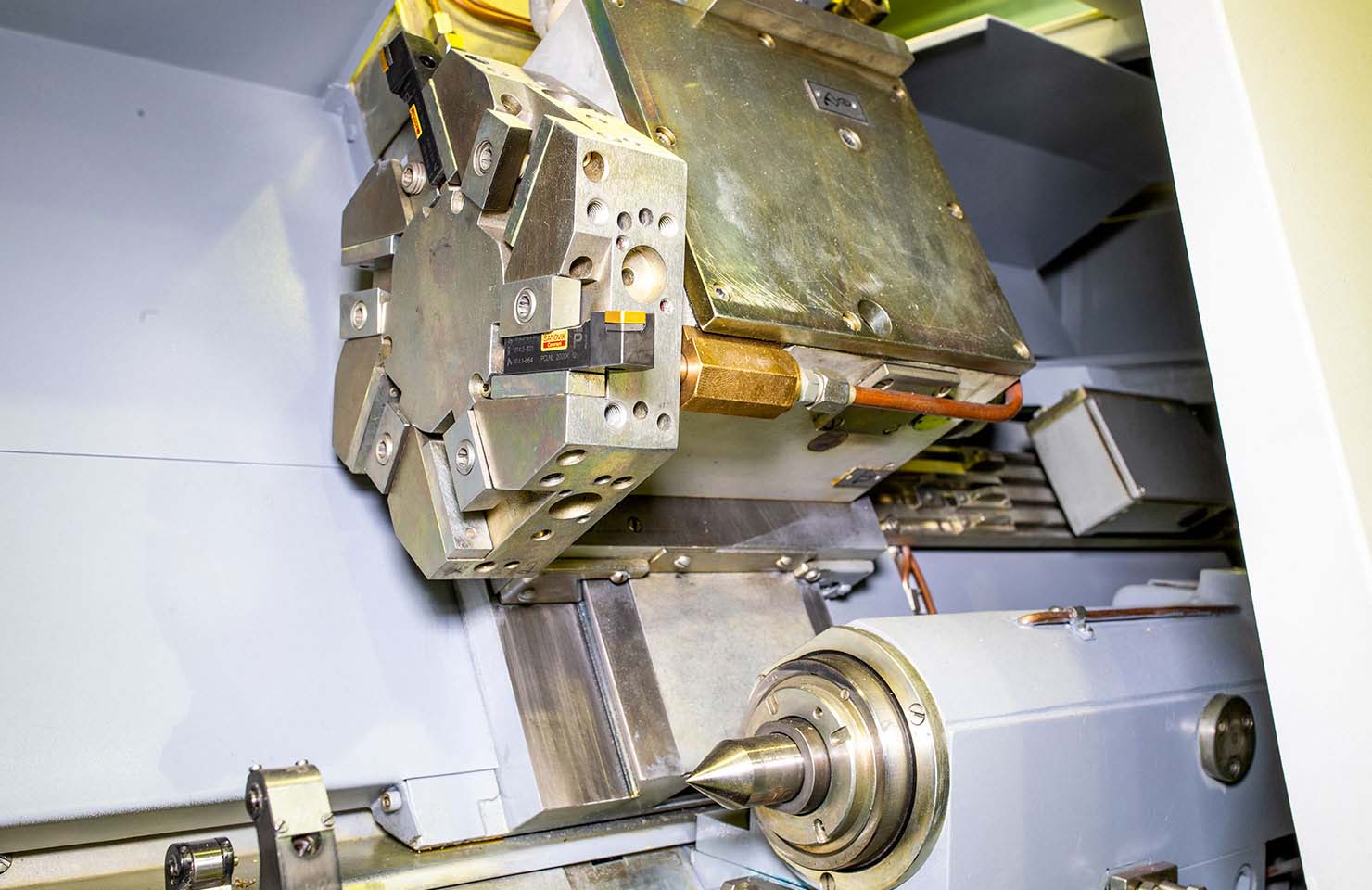 Напівавтомат оснащений затискним патроном та задньою бабкою.