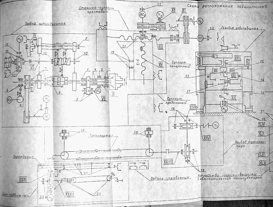 Схема кінематична токарного верстата із ЧПУ ТПУ-125. Дивитись у збільшеному масштабі