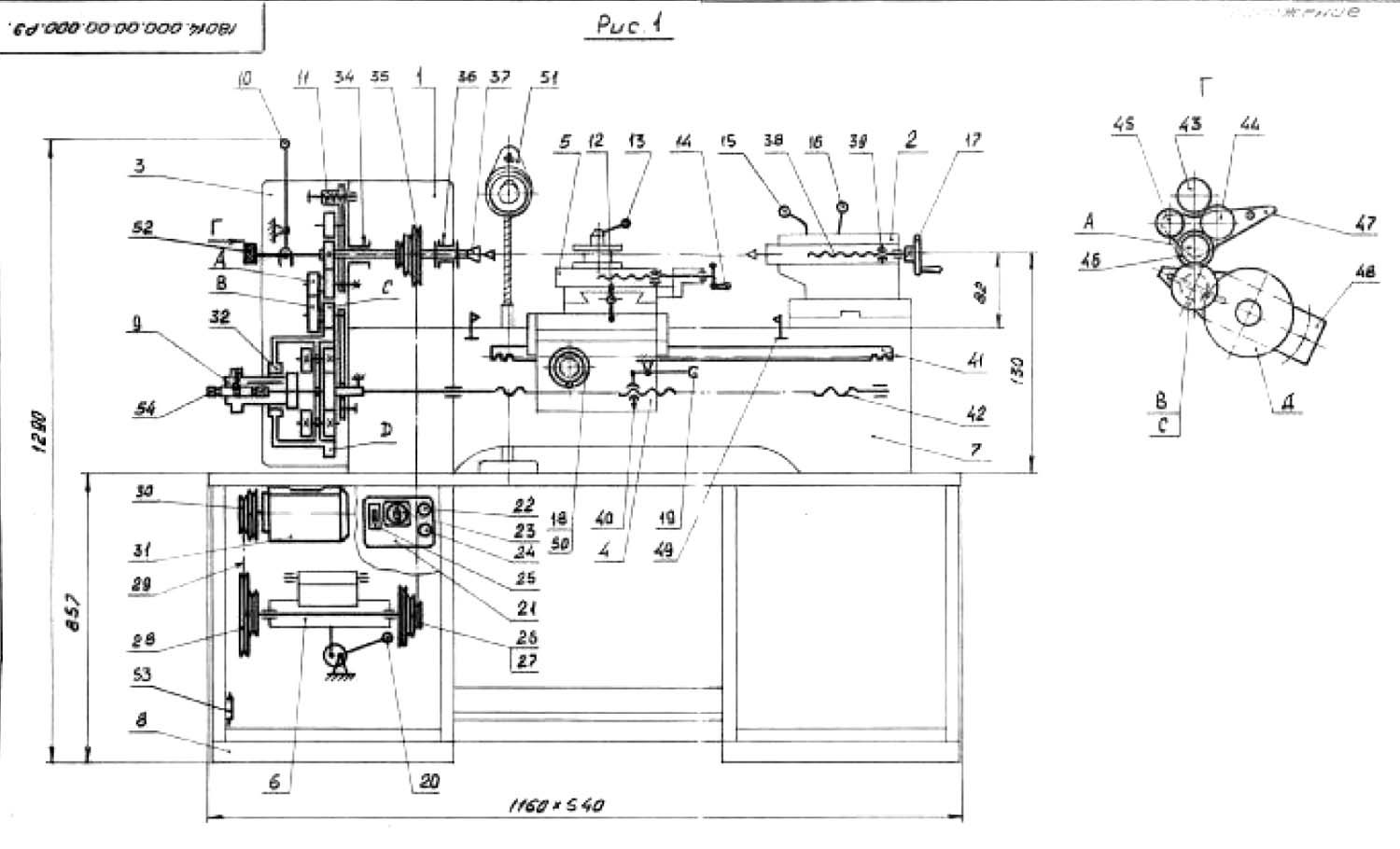 Загальний вигляд токарного верстата ТС-1. Дивитись у збільшеному масштабі