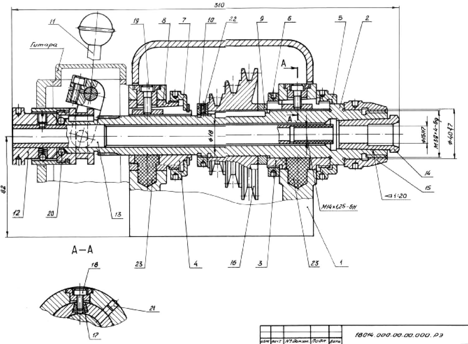 Передня бабка токарного верстата ТС-1. Дивитись у збільшеному масштабі