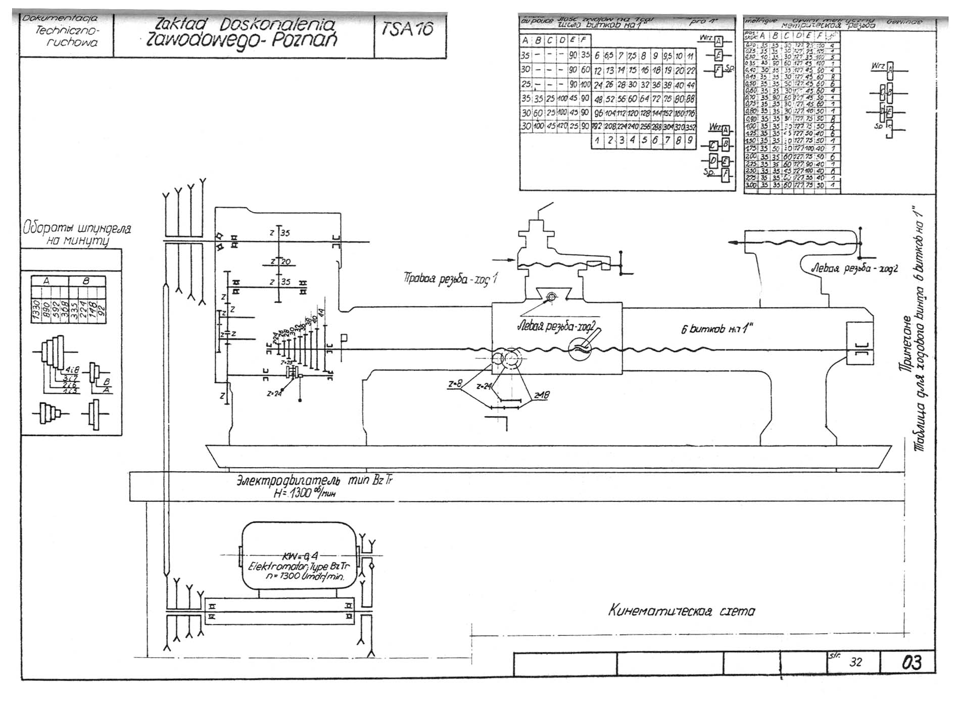 Схема кінематична токарно-гвинторізного верстата TSA-16. Дивитись у збільшеному масштабі