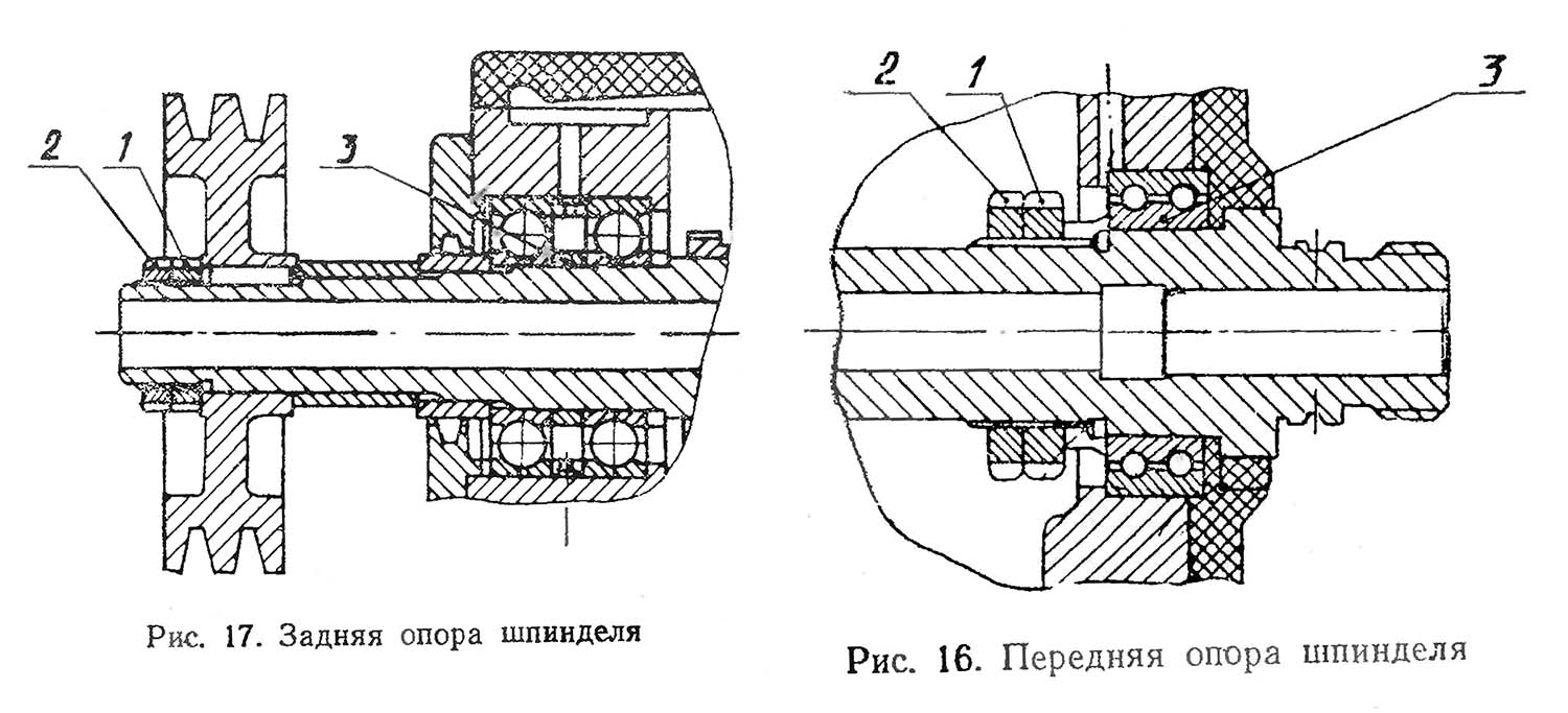 В передньої і задньої опорах шпинделя установлены по два радиально-упорных підшипника.