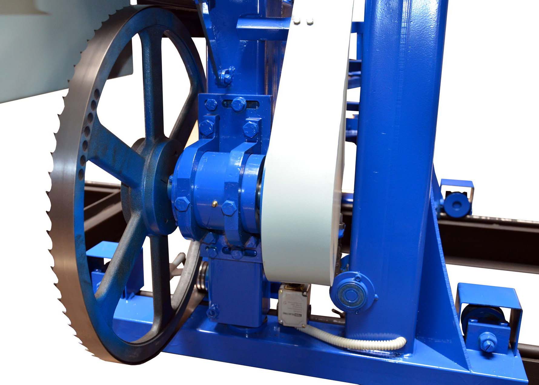 На пилорамах серии УЛПГ устанавливаются литые пильные шкивы из высокопрочного чугуна з плавающим износостойким ремнем клиновидной формы, который исключает контакт пилы з металлом шкива, в результате увеличивается ресурс роботи пилы, уменьшается шумность пилорамы, а также исключается необходимость править шкив.