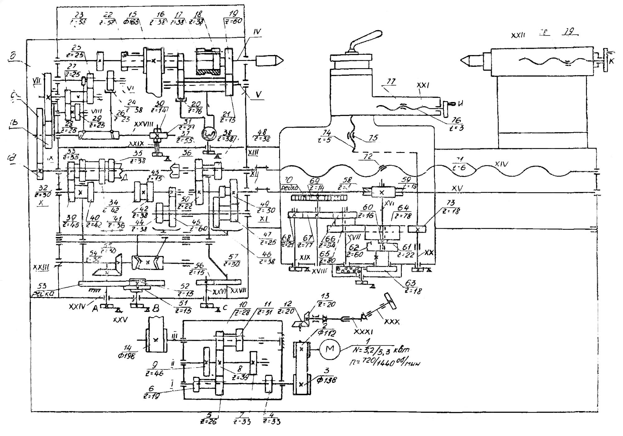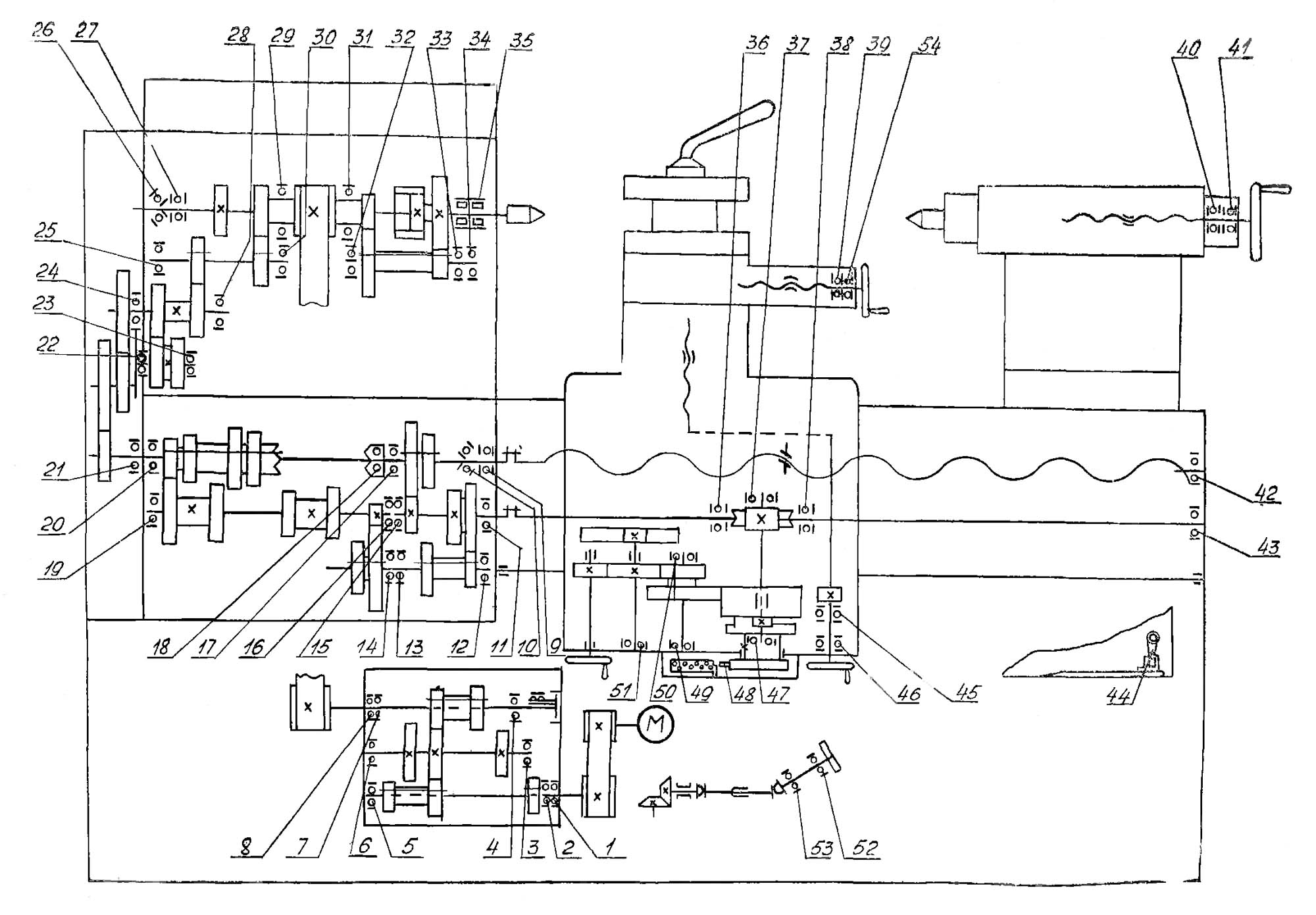 Кінематична схема токарно-гвинторізного верстата ут16пм
