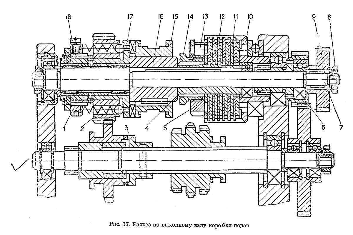 Фрикцион сблокирован з муфтой рабочих подач, что устраняет возможность их одновременного увімкнення.