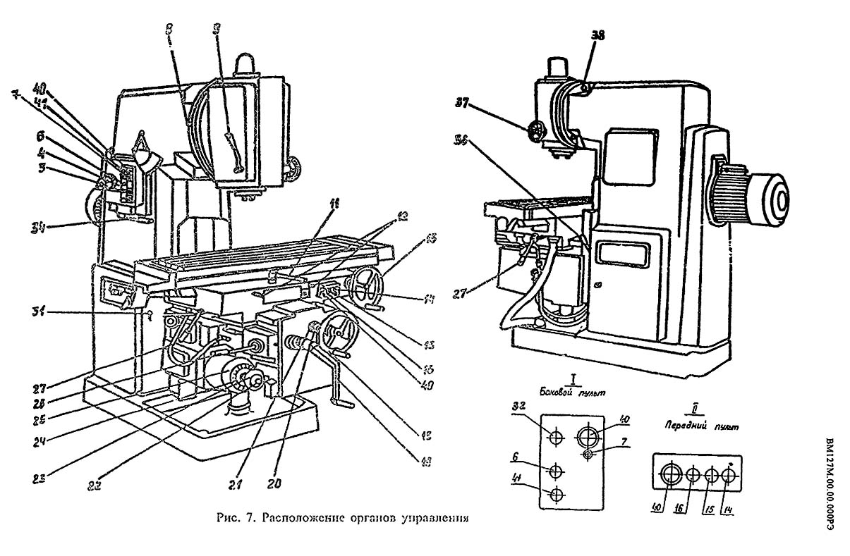 Список органів керування фрезерным верстатом ВМ127М