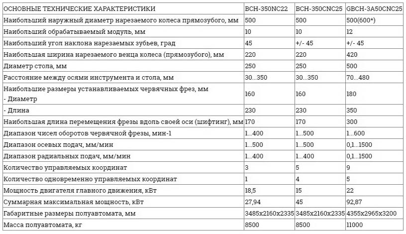 Технічні характеристики зубофрезерного верстата ВСН-350