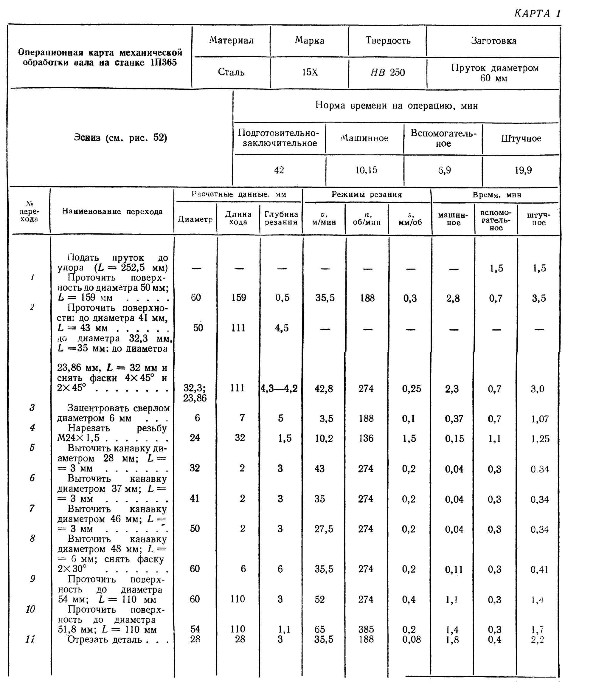 Операционная карта обробки вала на станке 1П365. Дивитись у збільшеному масштабі