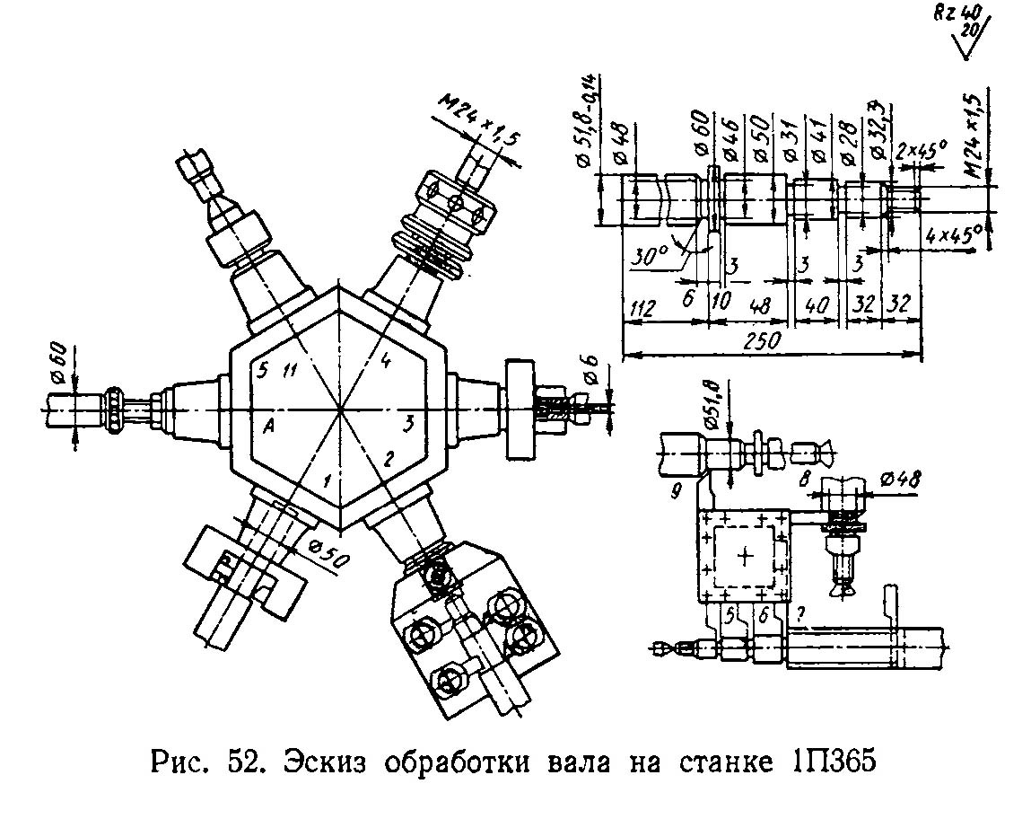 Ескіз обробки вала на станке 1П365. Дивитись у збільшеному масштабі