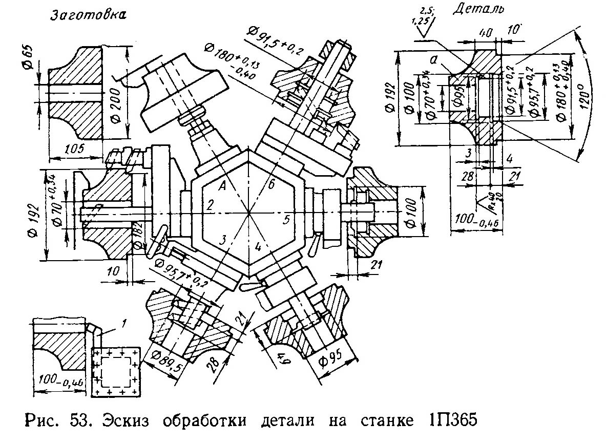 Для всех остальных револьверних верстатів, имеющих вертикальную ось обертання револьверної головки, технологические процессы аналогичные.
