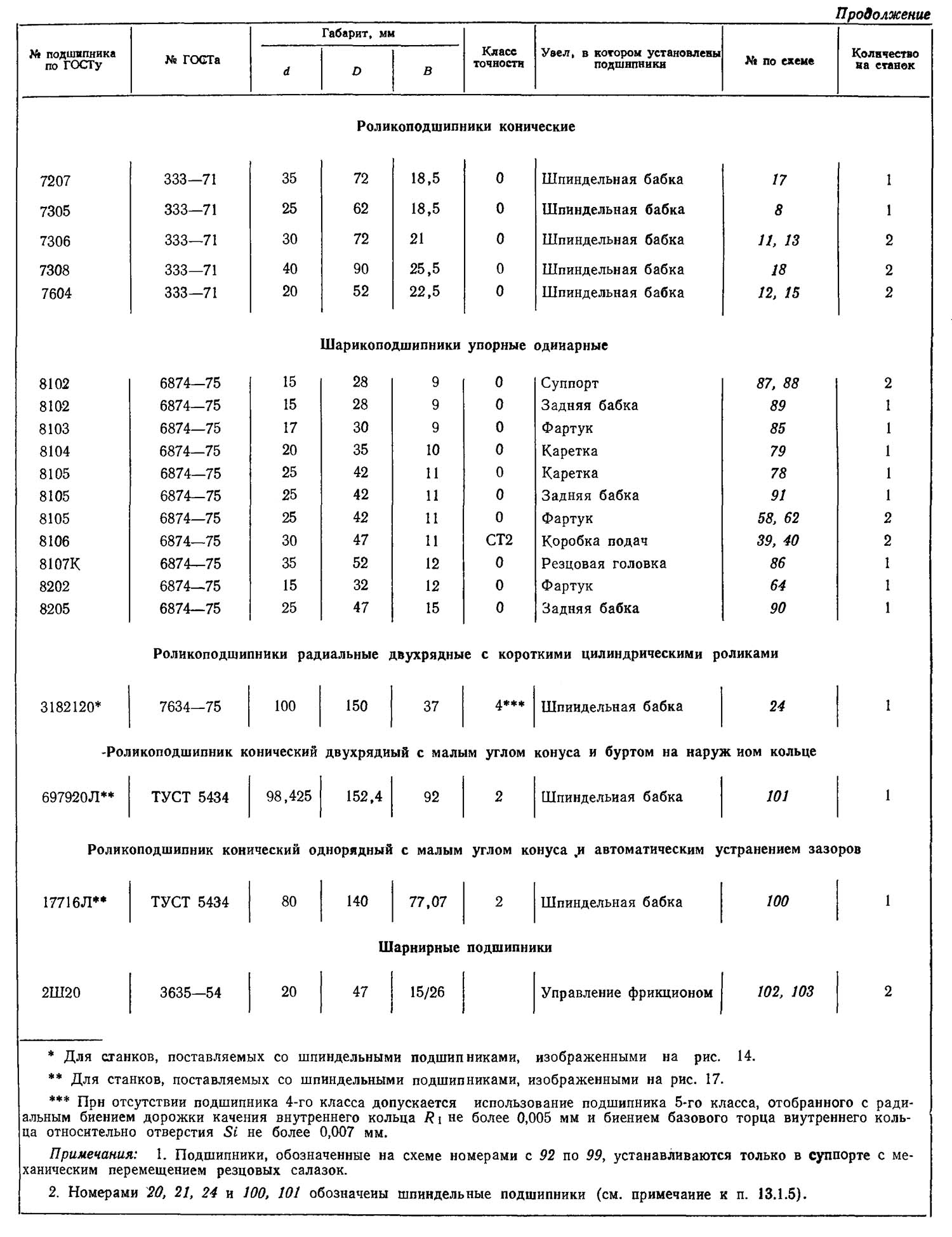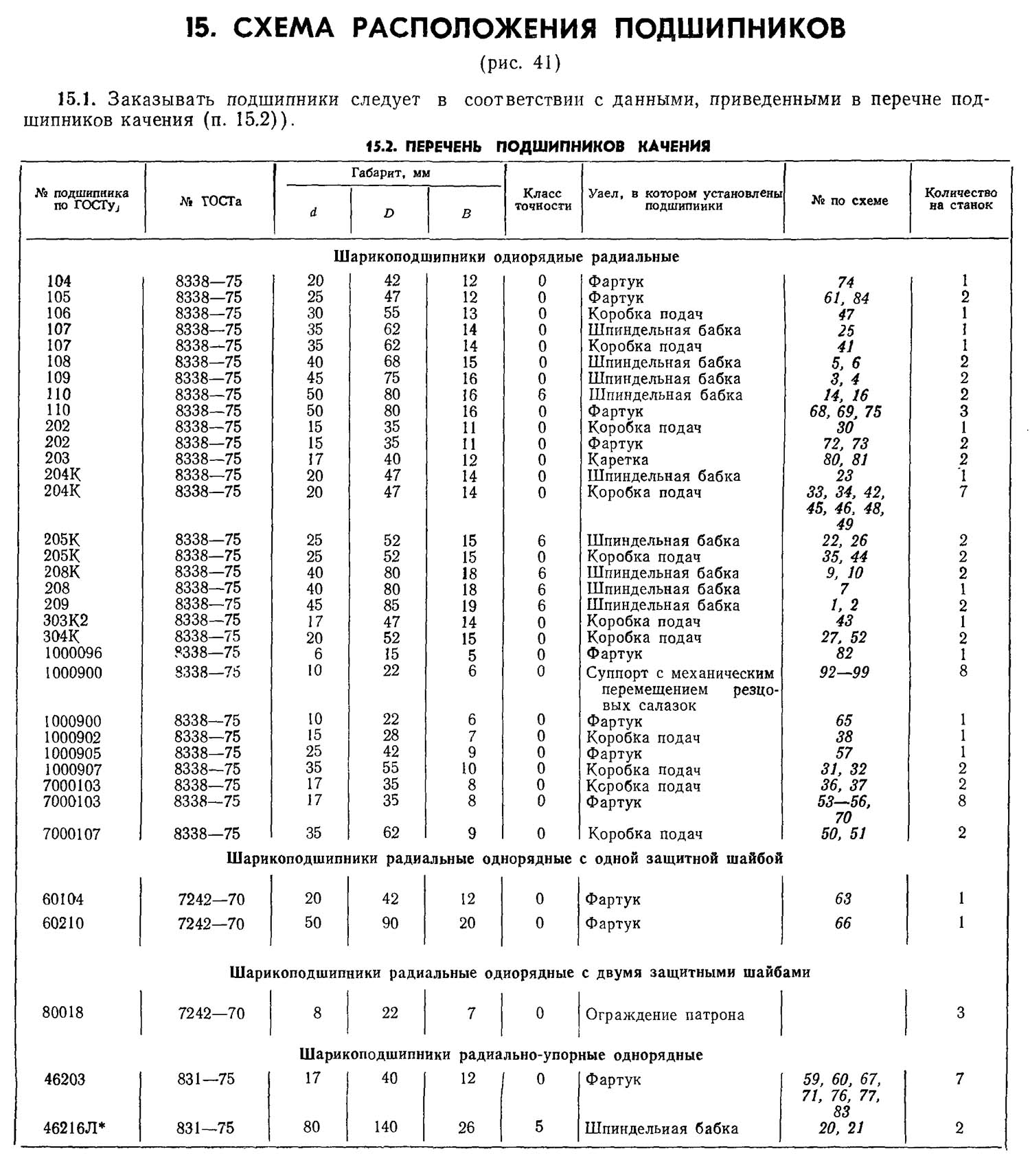 Перелік підшипників токарно-гвинторізного верстата 16к20