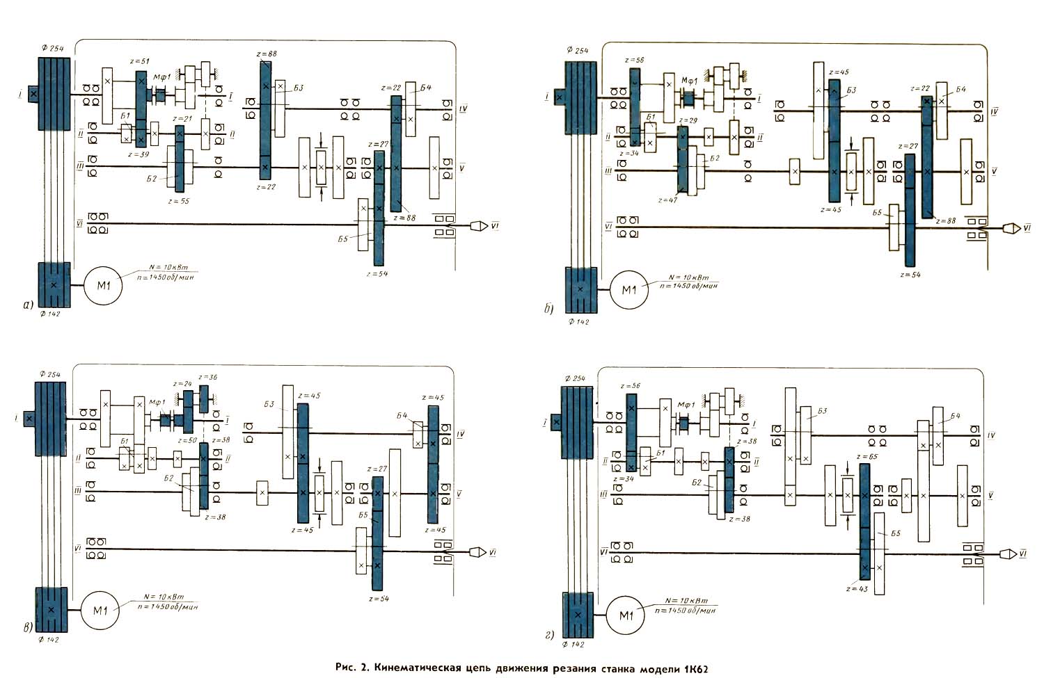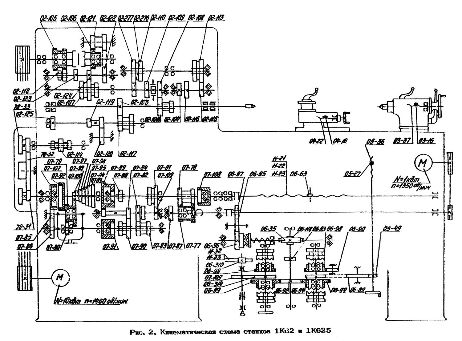 2. Схема кінематична токарно-гвинторізного верстата. Дивитись у збільшеному масштабі