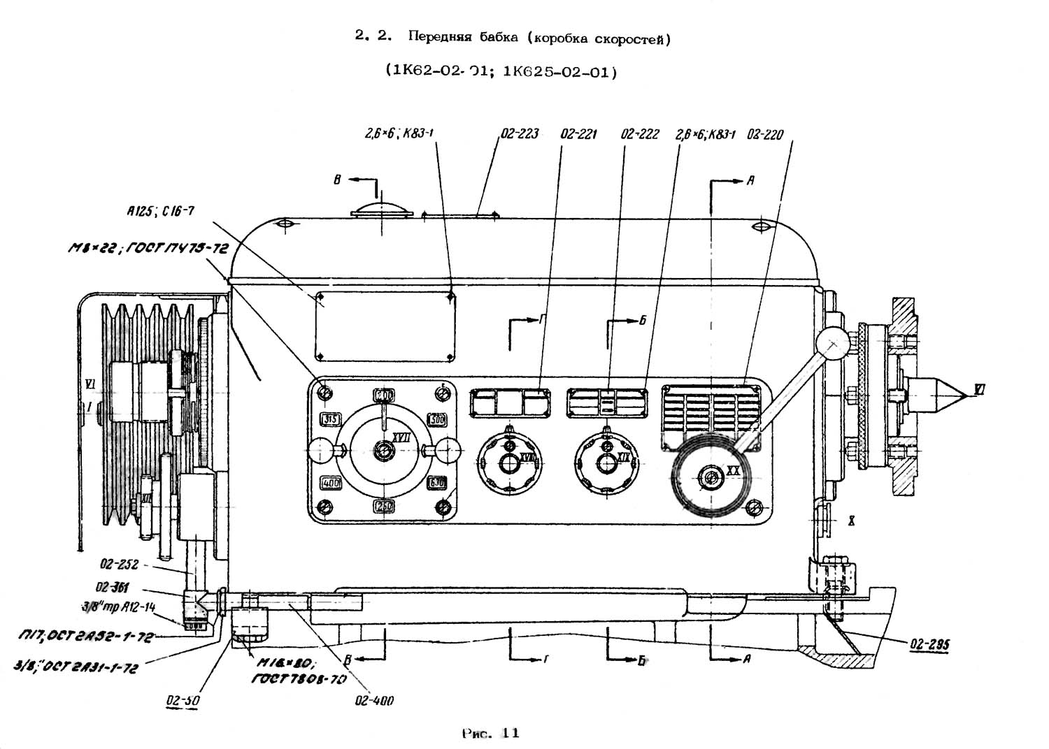 Загальний вигляд передньої бабки токарно-гвинторізного верстата. Дивитись у збільшеному масштабі