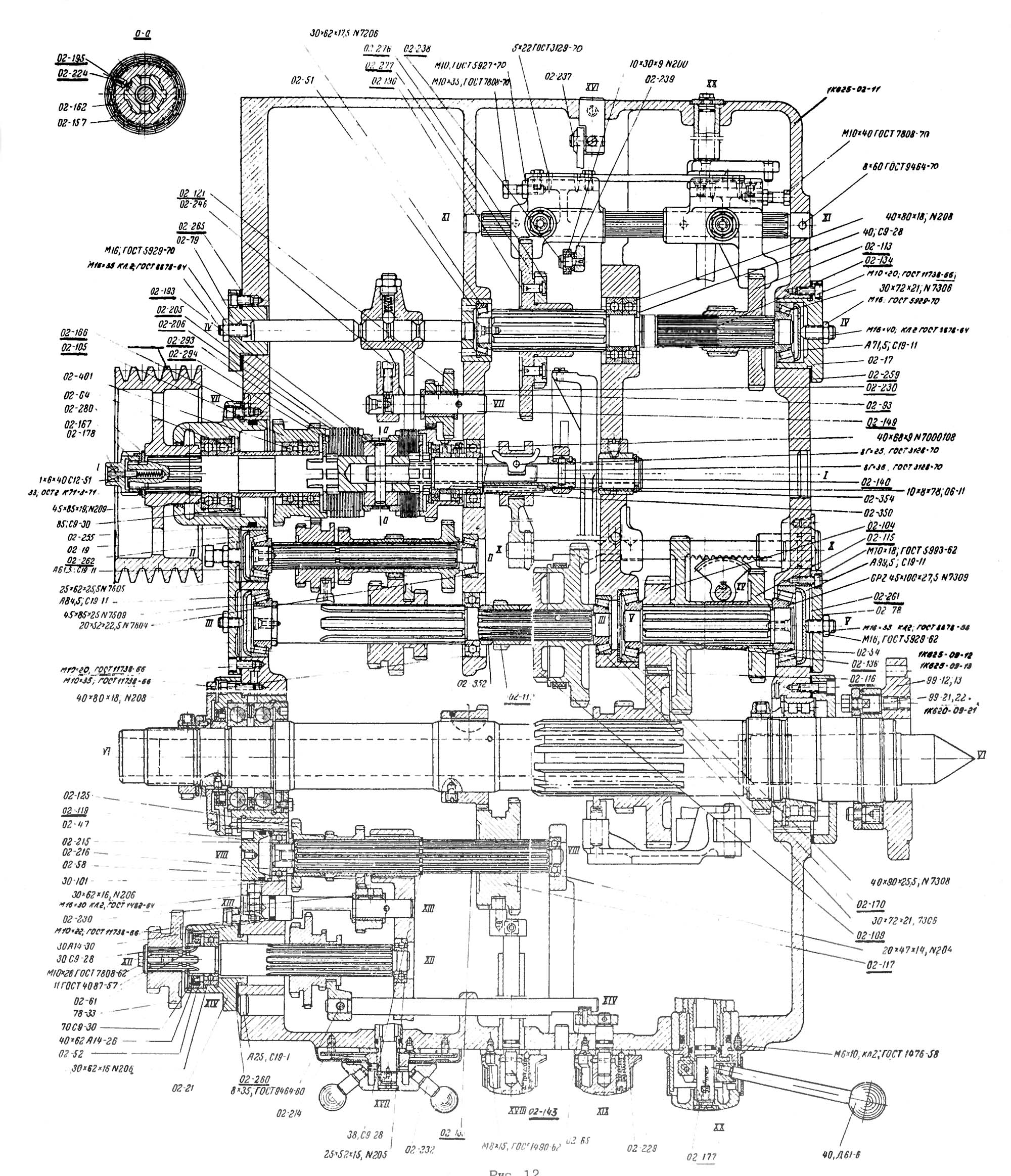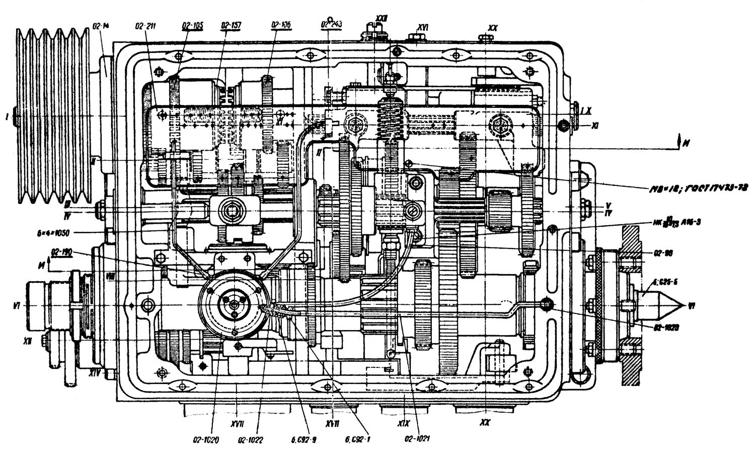 Розгортка передньої бабки токарно-гвинторізного верстата. Дивитись у збільшеному масштабі